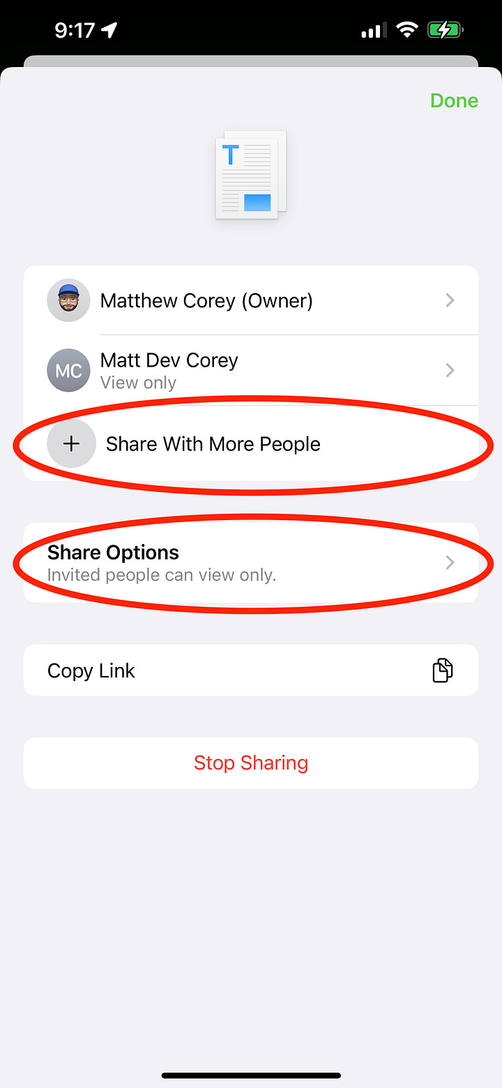 Through the UICloudSharingController, though? Well, that’s a different story. The presented sheet actually allows this to be configured in two places — with the ‘Share Options’ button, and with the ‘Share With More People’ button. Using the configuration I listed above, the ‘Share Options’ button results in the expected screens, however the ‘Share With More People’ button give me exactly the wrong results!